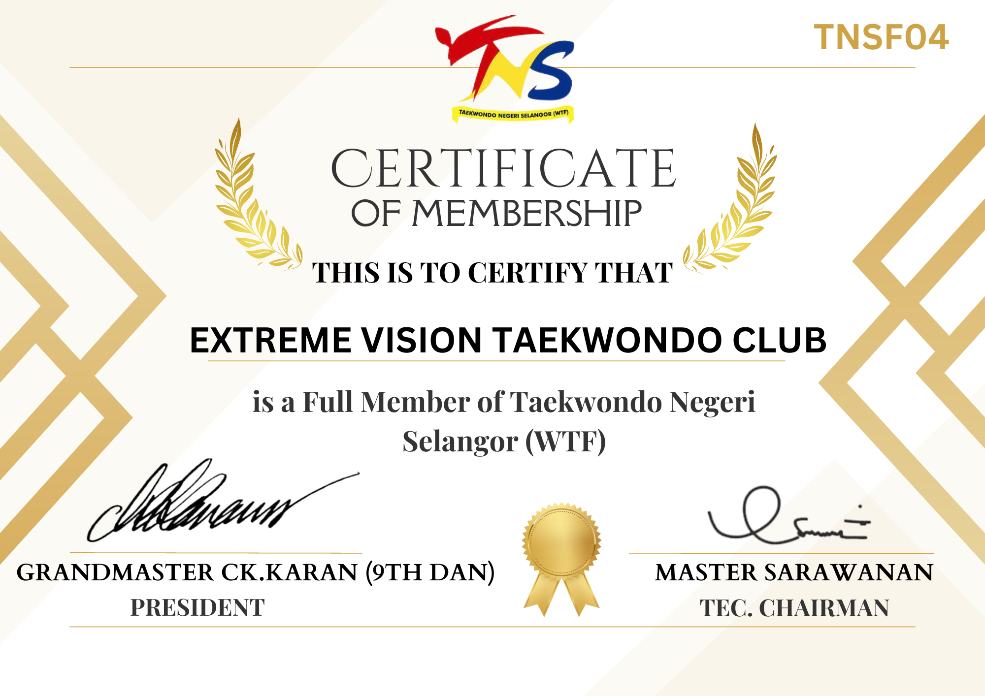 A member of Taekwondo Malaysia & A member of Majlis Sukan Negeri Selangor
