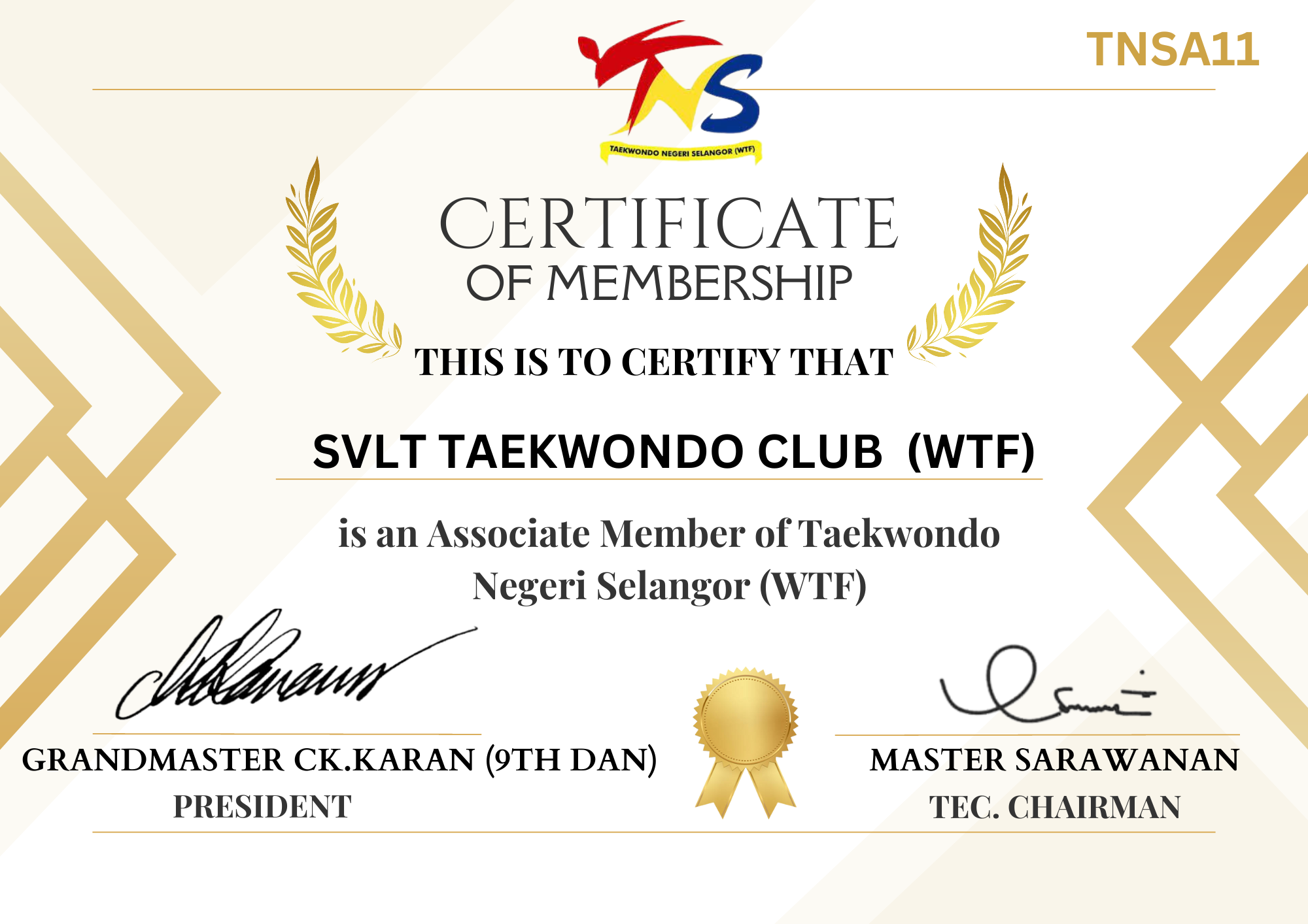 A member of Taekwondo Malaysia & A member of Majlis Sukan Negeri Selangor