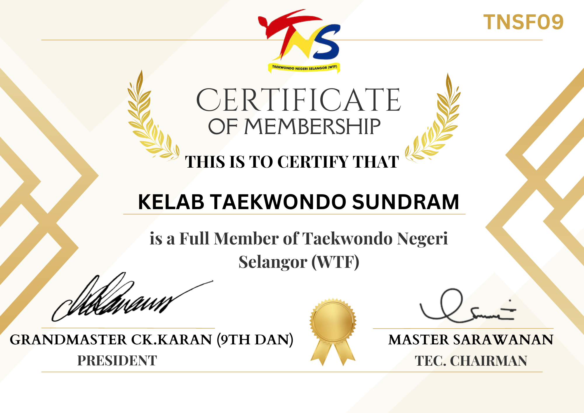 A member of Taekwondo Malaysia & A member of Majlis Sukan Negeri Selangor