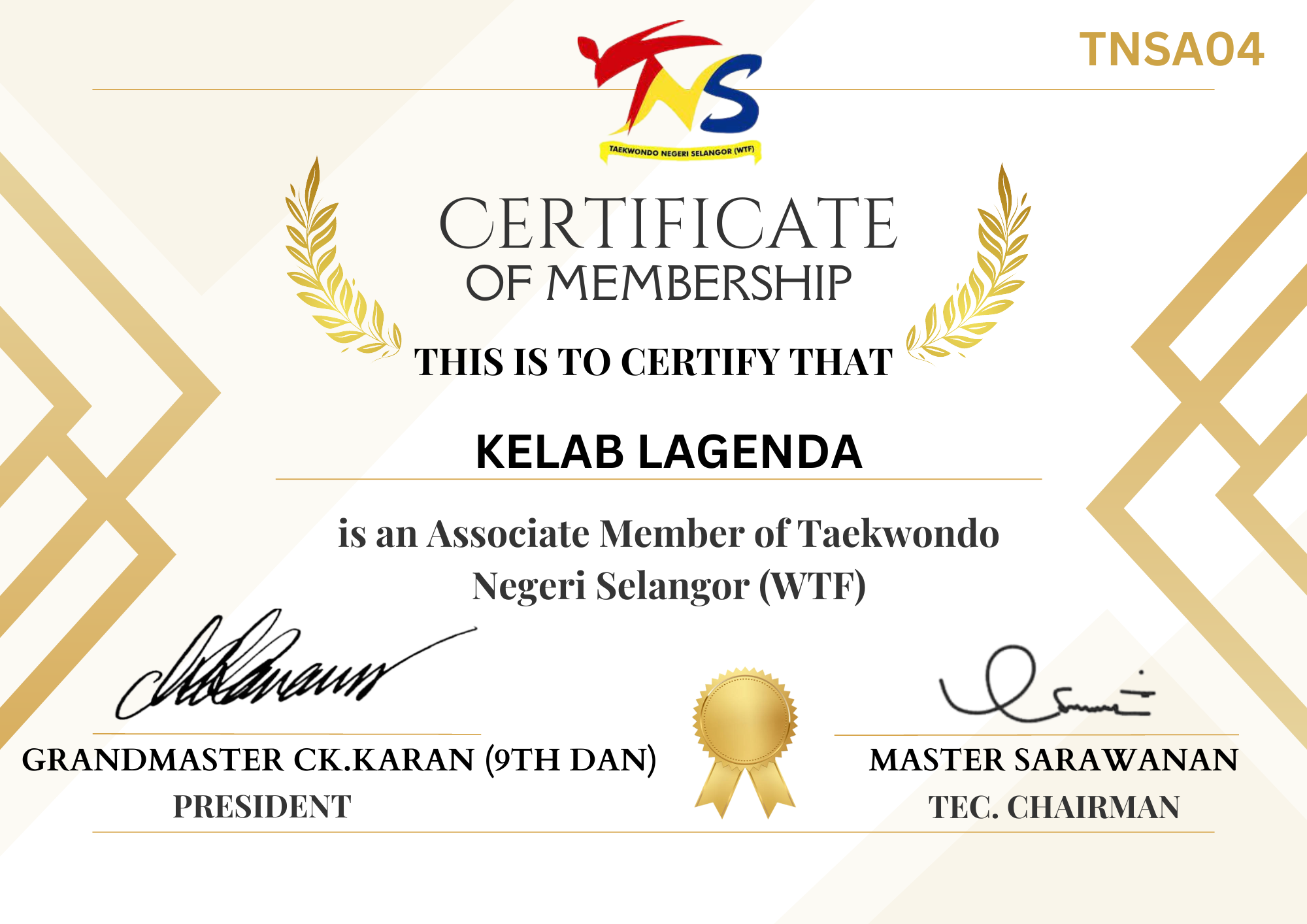 A member of Taekwondo Malaysia & A member of Majlis Sukan Negeri Selangor