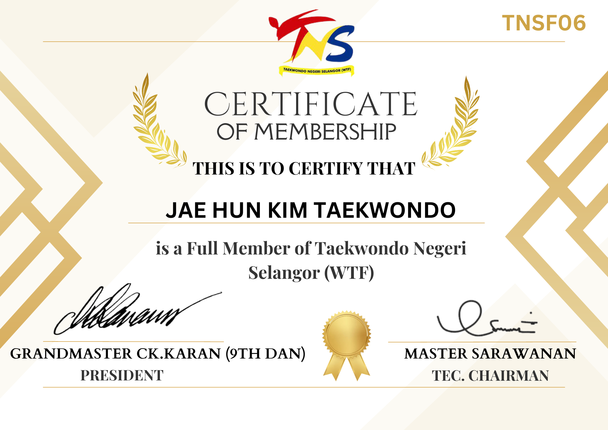 A member of Taekwondo Malaysia & A member of Majlis Sukan Negeri Selangor