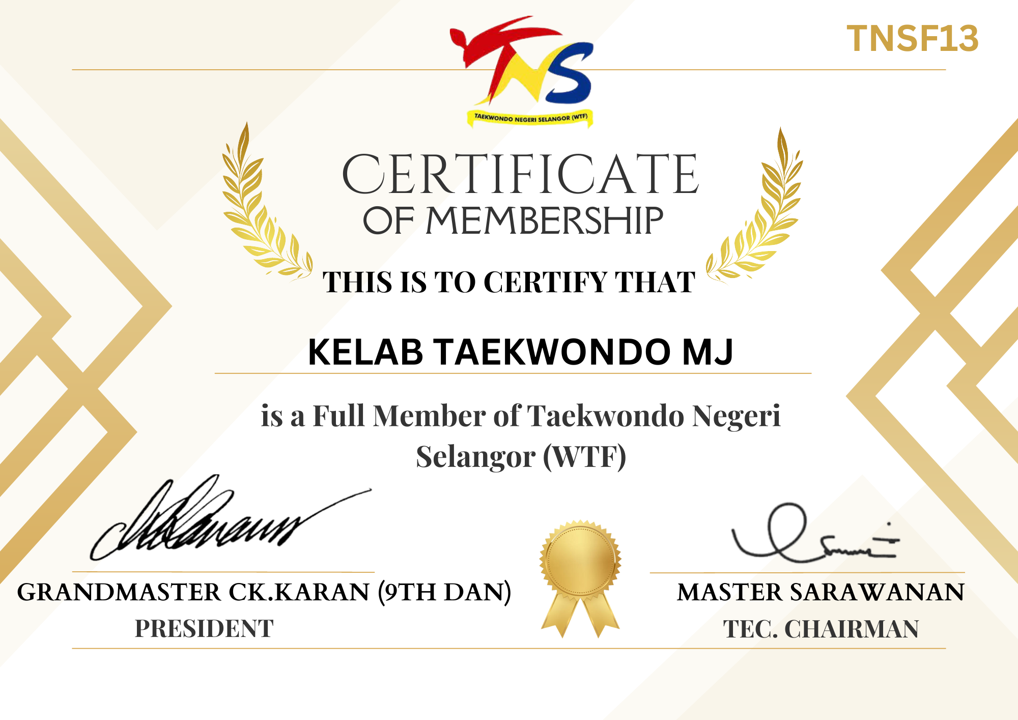 A member of Taekwondo Malaysia & A member of Majlis Sukan Negeri Selangor