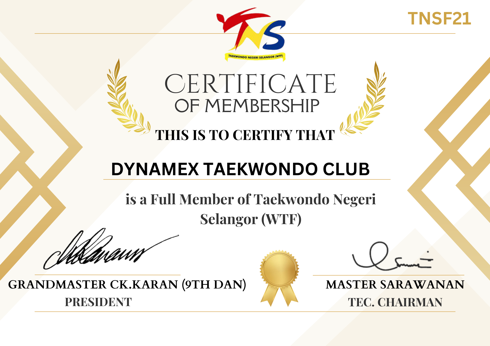 A member of Taekwondo Malaysia & A member of Majlis Sukan Negeri Selangor